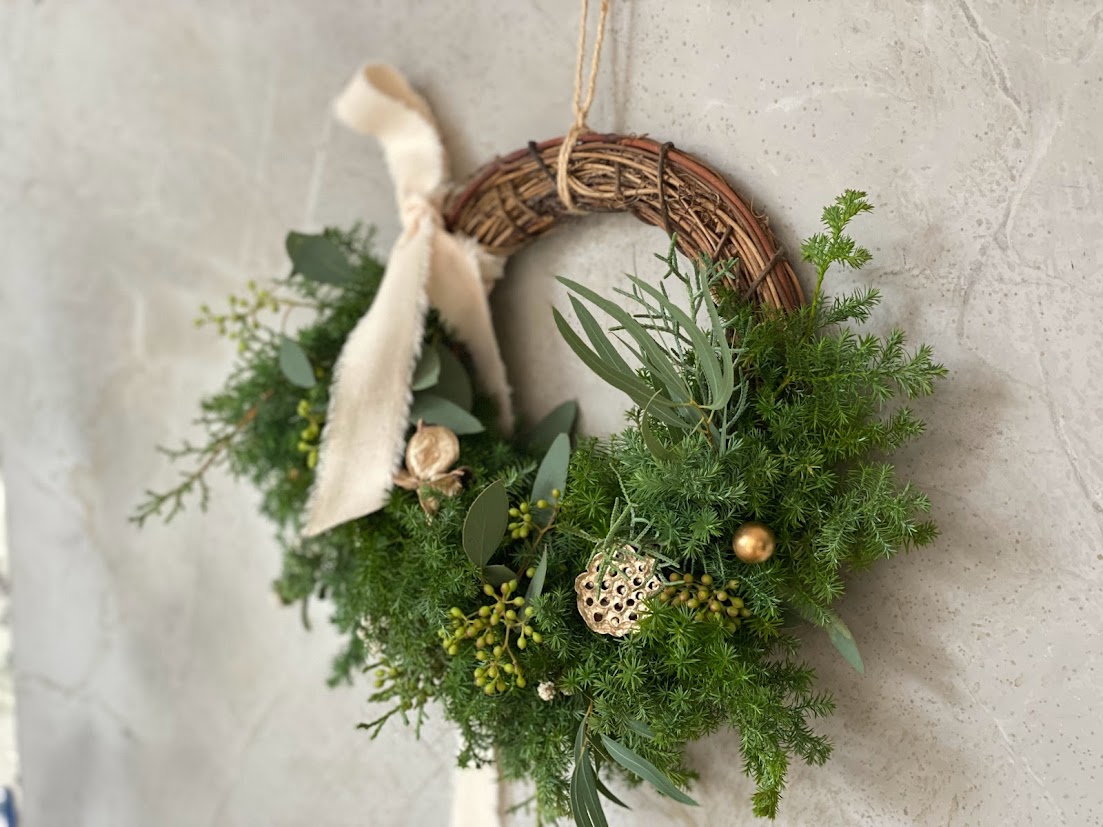 ドライ商品もリースやアレンジ、スワッグ等、豊富に商品展開していきます。